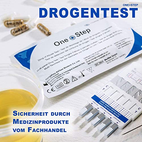 5 x One+Step drugstest, sneltest voor 7 soorten medicijnen, cocaïne, cannabis, methampamine, opiate, amfetamines, EDDP…